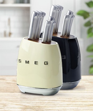顾客在商店或网上(只要有)购买合格产品,每花20美元,就能获得一张贴纸。顾客可于11月2日至1月24日期间,根据他们所喜爱的SMEG刀,领取一定数量的贴纸,以换回六把SMEG刀中的一把,或售完即止。总共有六把刀要收集。此外,有了部分付款的选择,客户可以更快捷、更容易地得到他们最喜欢的SMEG刀具。顾客也有机会把他们的贴纸贴在SMEG刀块,可在奶油或黑色。